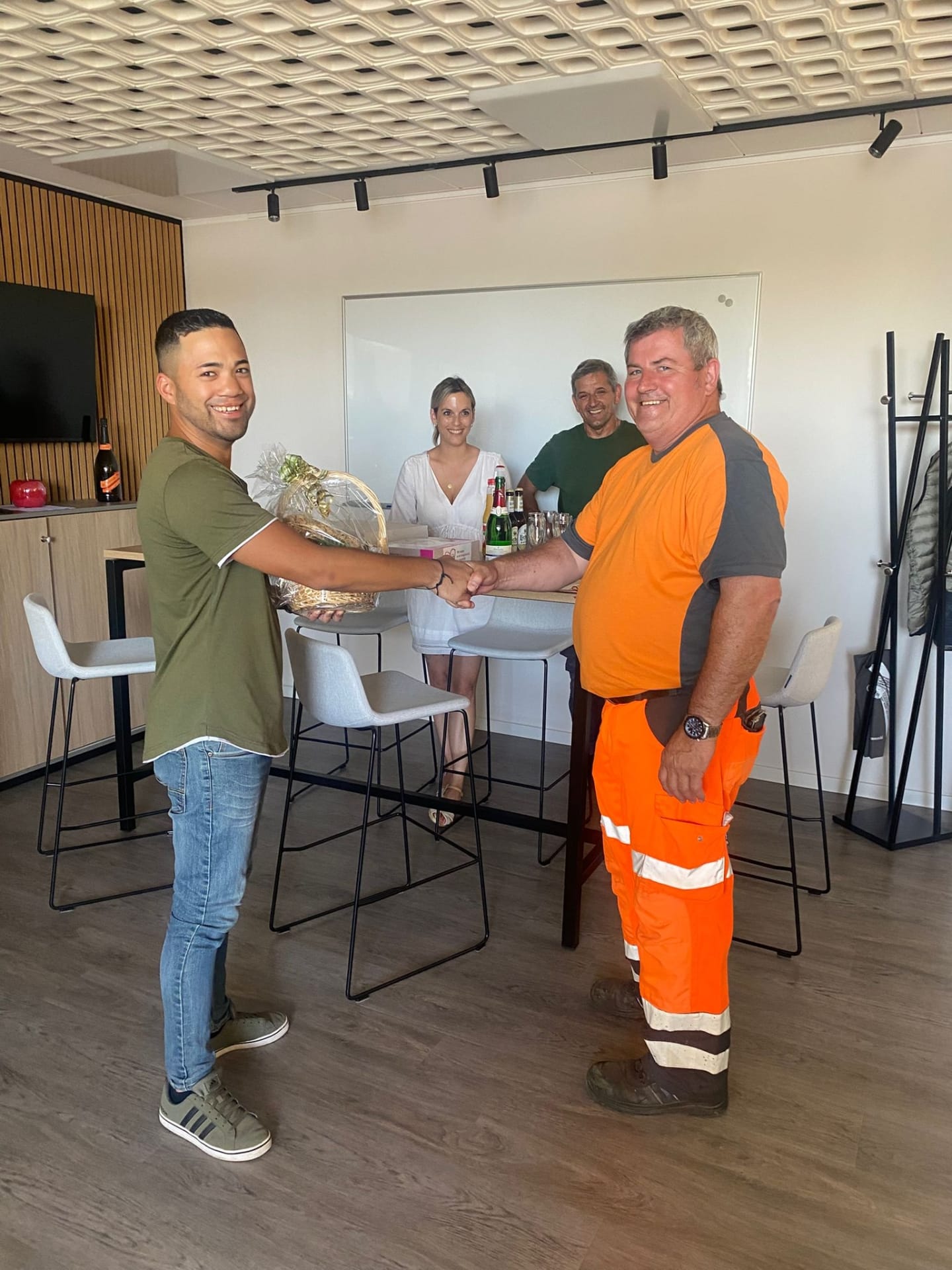 Bürgermeister Daniel Imbescheid, Personalkoordinatorin Janine Fritzel sowie die Personalratsvertreter Benjamin Naumann und Torsten Krohm überbrachten den beiden Jubilaren in einem kleinen feierlichen Rahmen ihre Glückwünsche.