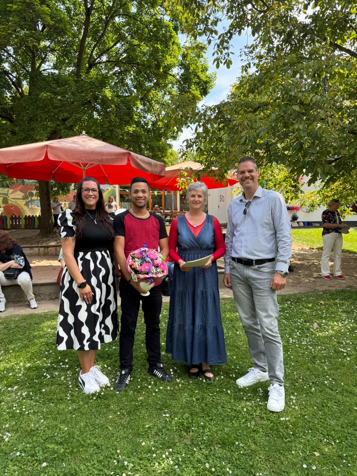 Am 21. Mai fand ein besonders emotionaler Programmpunkt statt: das Ehemaligentreffen. Ehemalige Mitarbeitende der Einrichtung kamen zusammen, um Erinnerungen auszutauschen. Eine Fotoausstellung dokumentierte fünf Jahrzehnte Kita-Geschichte. Zusätzlich wurden historische Gegenstände ausgestellt, die die Zeit überdauert hatten. Im Rahmen dieser Feier überreichte Bürgermeister Imbescheid Frau Anke Rohatzsch eine Urkunde zu ihrem 40-jährigen Dienstjubiläum – ein weiterer besonderer Moment.
