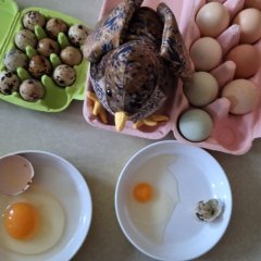 Am nächsten Tag ging es weiter. Gemeinsam haben sich die Kinder mit den Erzieherinnen und Erzieher angeschaut, wie ein Wachtelei aussieht und vorallem wie klein es im Gegensatz zu einem Hühnerei ist.