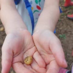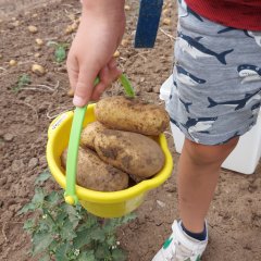 Unterwegs stรคrkten sich die Kinder mit einem Picknick in der Natur, bevor es dann mit vollem Tatendrang weiterging Richtung Kartoffelacker. Nach der BegrรผรŸung ging es frisch ans Werk. Eifrig sammelten die Kinder in ihren Eimern die Kartoffeln. Bestens unterstรผtzt und beraten wurden die Vorschulkinder von Bauer Grรผnewald. Dieser erklรคrte den Kindern auch, dass es verschiedenen Sorten an Kartoffeln gibt und ihre gesammelten Kartoffeln, zu der Sorte โ€žGoldmarieโ€œ gehรถren.