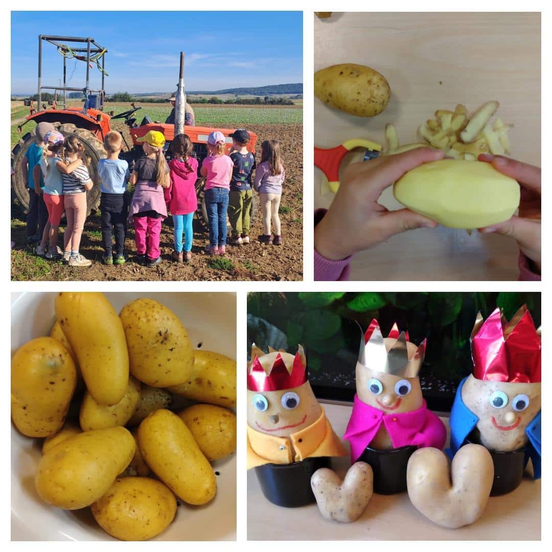 Bereits im April starteten unsere zukรผnftigen Vorschulkinder ein ganz besonderes Projekt: Gemeinsam mit Bauer Grรผnewald aus Florstadt und einer Legemaschine pflanzten die Kinder Kartoffeln auf dem Feld. Im September war es dann endlich soweit โ die groรe Ernte stand an. Mit Hilfe eines Kartoffelroders wurden die Knollen aus der Erde geholt und von den Kindern mit viel Spaร eingesammelt. In der Kita ging es die nรคchsten Tage dann ans Verarbeiten: Es gab leckeren Kartoffelbrei, knusprige Kartoffelpuffer und eine wรคrmende Kartoffelsuppe. Ein besonderes Highlight war die Wahl zum Kartoffelkรถnig โ die schรถnsten Exemplare wurden gekรผrt und ausgestellt. Wir danken Bauer Grรผnewald fรผr die tolle Unterstรผtzung.