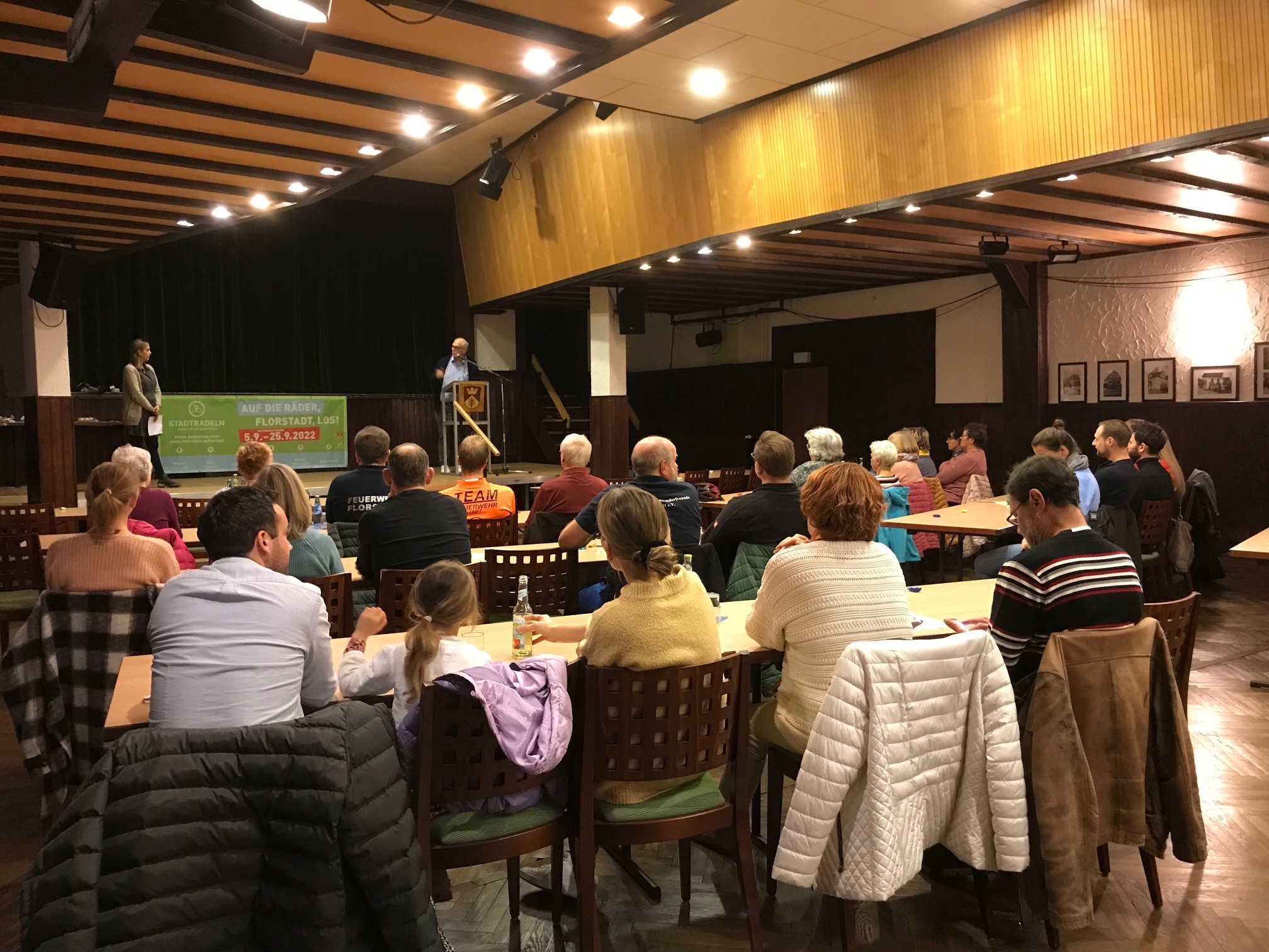 Nachdem alle Preise, Urkunden und Sachspenden verteilt, Würdigungen ausgesprochen und Fotos gemacht worden waren, genoss man noch bei einem Gläschen Sekt oder Kaltgetränken und einem kleinen Imbiss in geselliger Runde die einmalige Atmosphäre des Saalbau Lux. Außerdem schmiedete man bereits Pläne für das 3. Florstädter Stadtradeln im kommenden Jahr, für das Janine Fritzel bereits kräftig die Werbetrommel rührte.